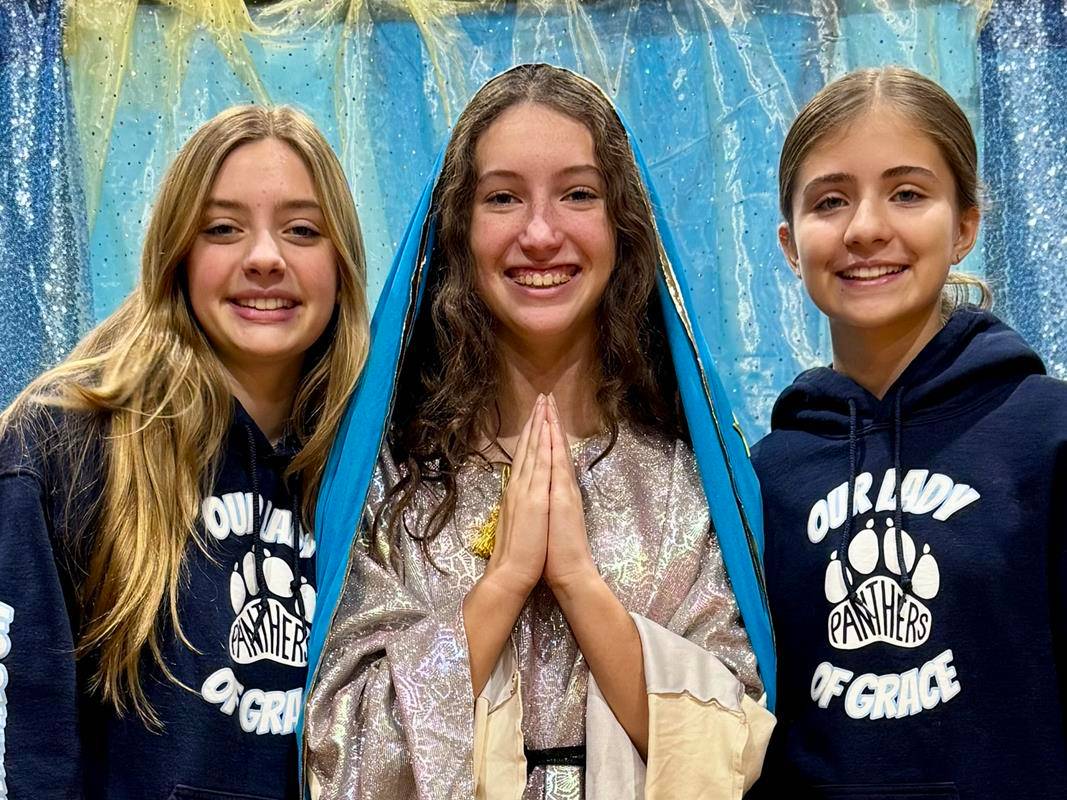 In Greensboro, Our Lady of Grace School held its annual reenactment of Our Lady's appearance in the Americas. Eighth-grade students performed Dec. 12 in front of the whole school following the daily singing of the posadas.