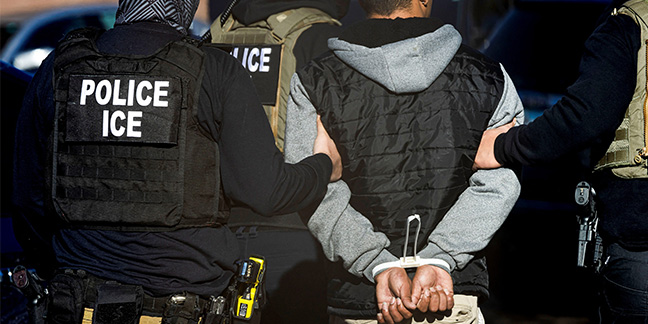 Foto superior: Agentes del Servicio de Inmigración y Control de Aduanas detienen a un hombre tras realizar una redada en el complejo de apartamentos Cedar Run en Denver, el 5 de febrero de 2025. (Foto de OSV News/Kevin Mohatt, Reuters)