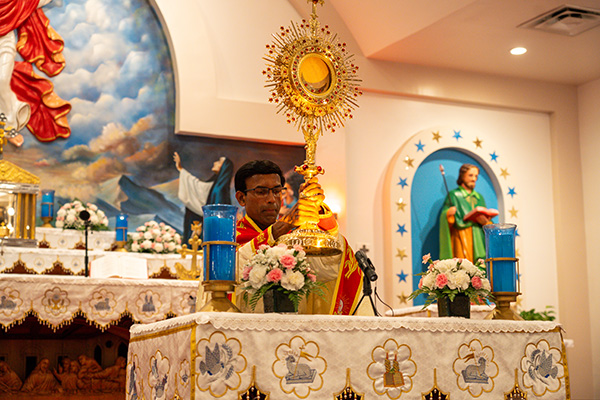 Father Baiju Paul Puthussery occasionally celebrates Mass at St. Mary’s in Charlotte, a Syro-Malabar Rite parish with more than 300 parishioners mainly hailing from his home of Kerala, India. (WIll Creter | Catholic New Herald) HIGH POINT — Father Baiju Paul Puthussery is celebrating his 25th anniversary as an Oblate of St. Francis de Sales priest. After years spent as a school administrator, he is now living out his priestly ministry as parochial vicar of Immaculate Heart of Mary Parish.