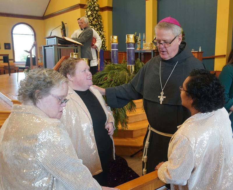 Holy Angels, a sponsored ministry of the Sisters of Mercy, provides care for people with intellectual and developmental disabilities. Bishop Martin gathered with many of the 81 residents for the holiday celebration at nearby Queen of the Apostles Church.